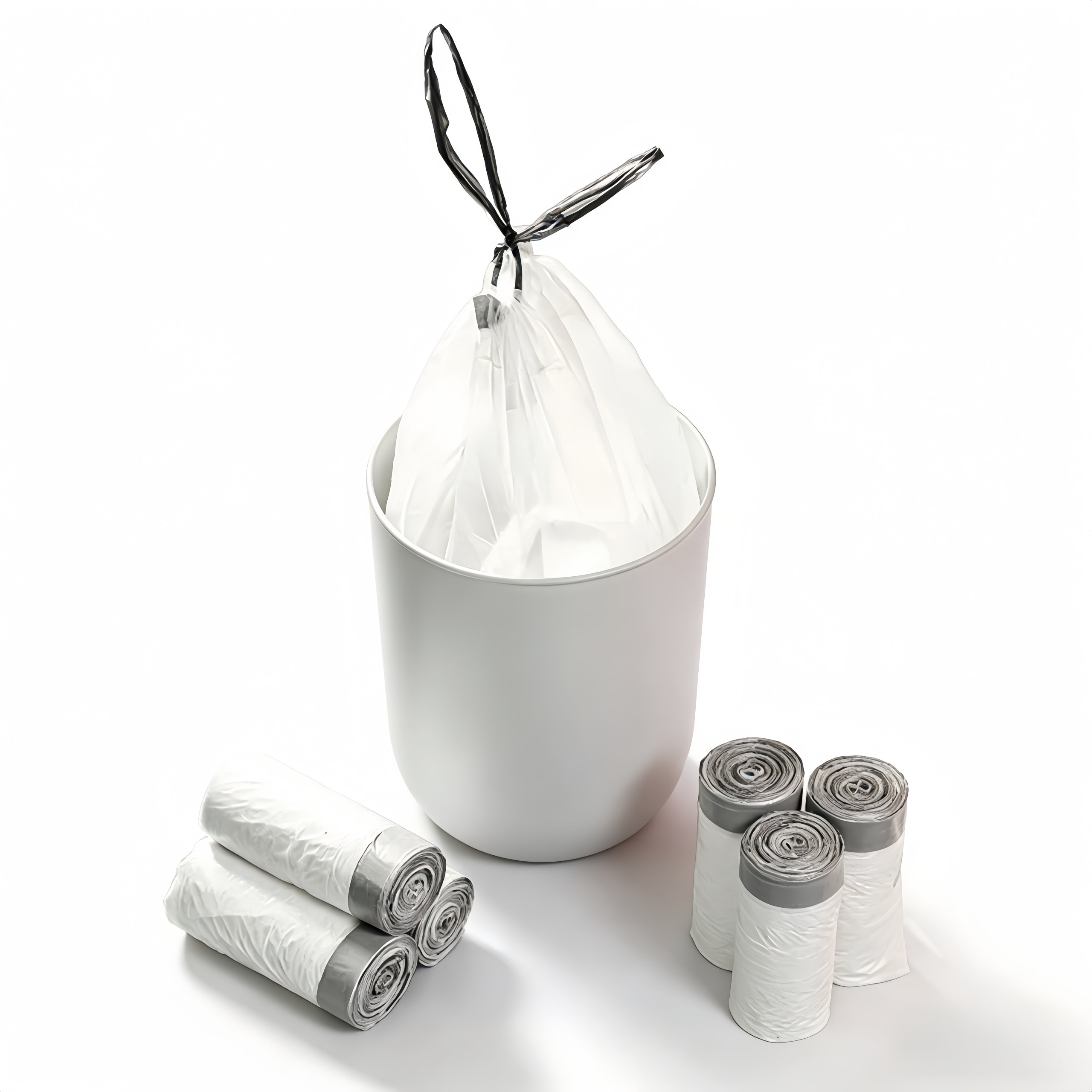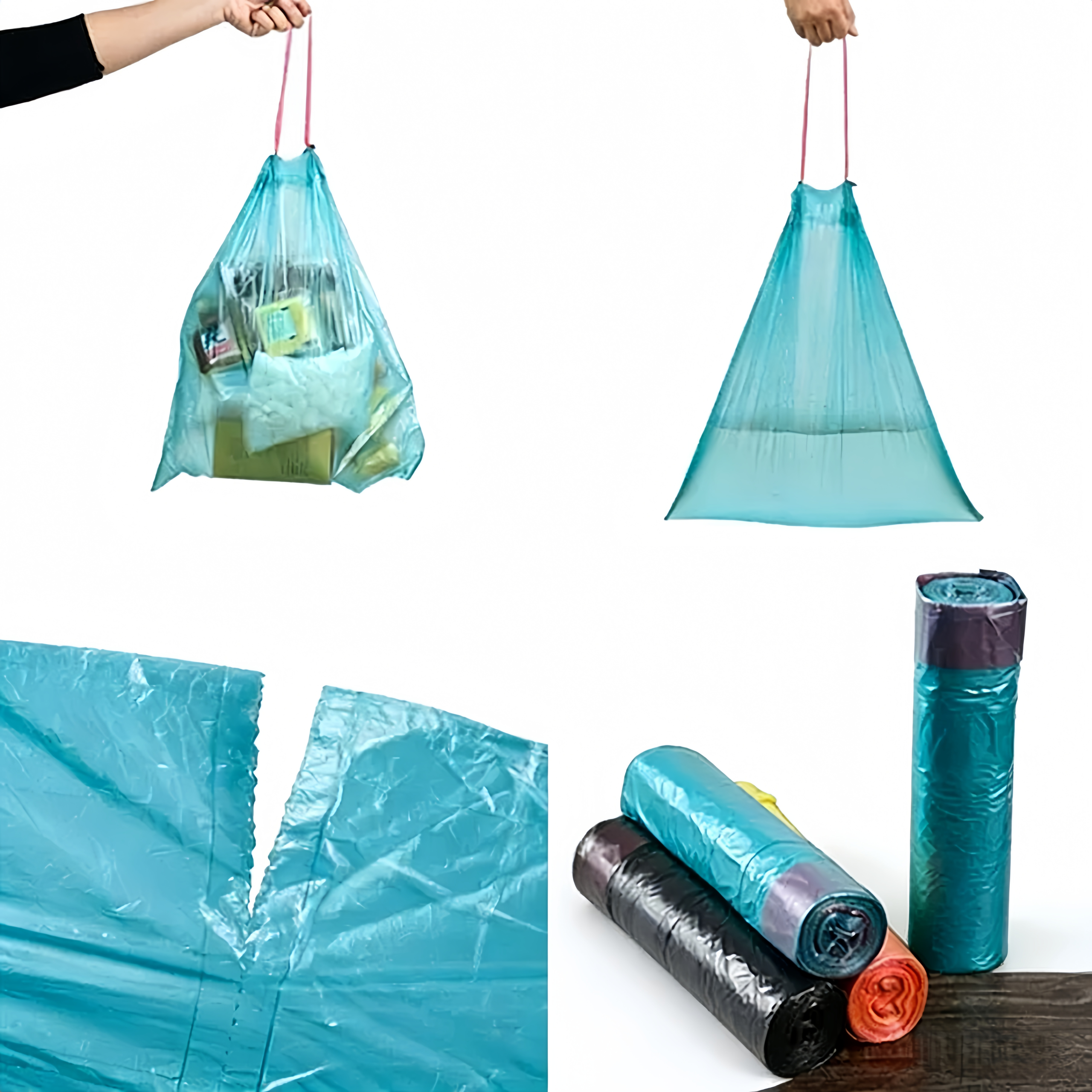 Recycle hdpe ldpe clear plastic tie top garbage bag clear ldpe black 30 60 gallon drawstring trash bag for restaurant